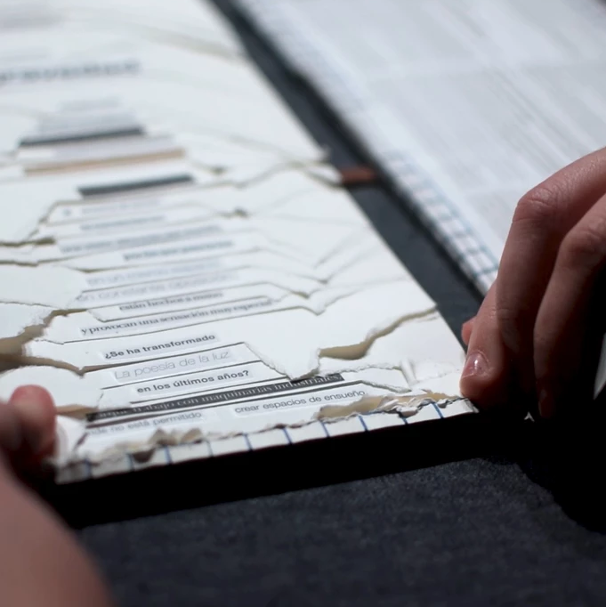 Trabajo de experimentación en el que se plantea una adivinanza creada a partir del azar. Para leerla y descubrir su respuesta hay que romper página a página del libro.