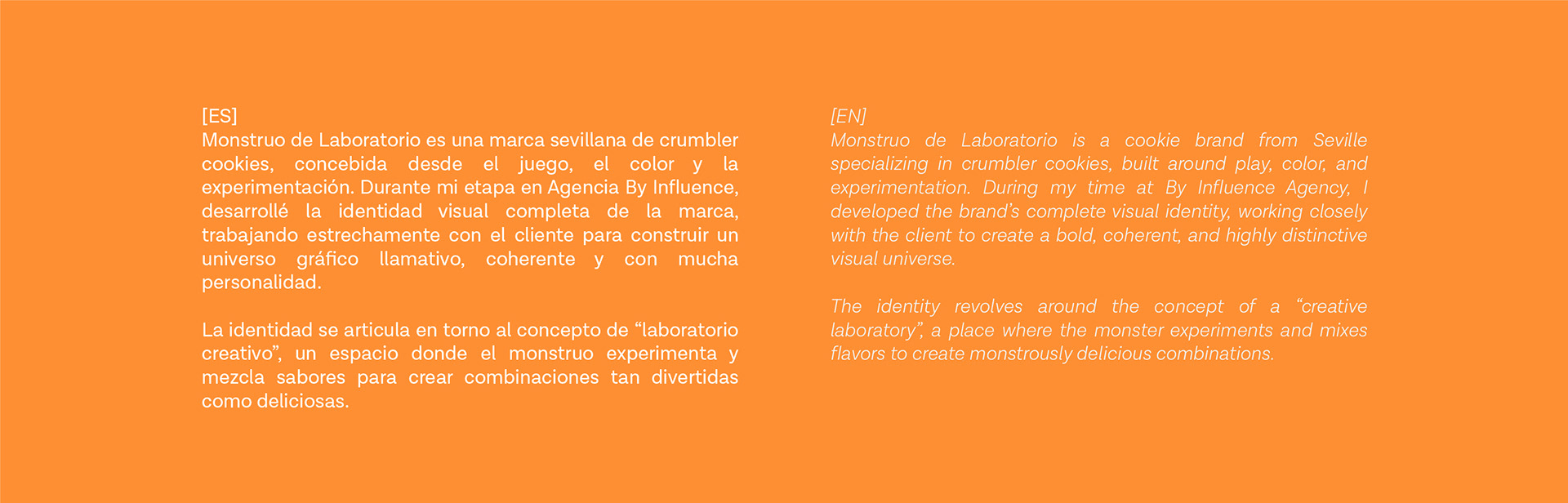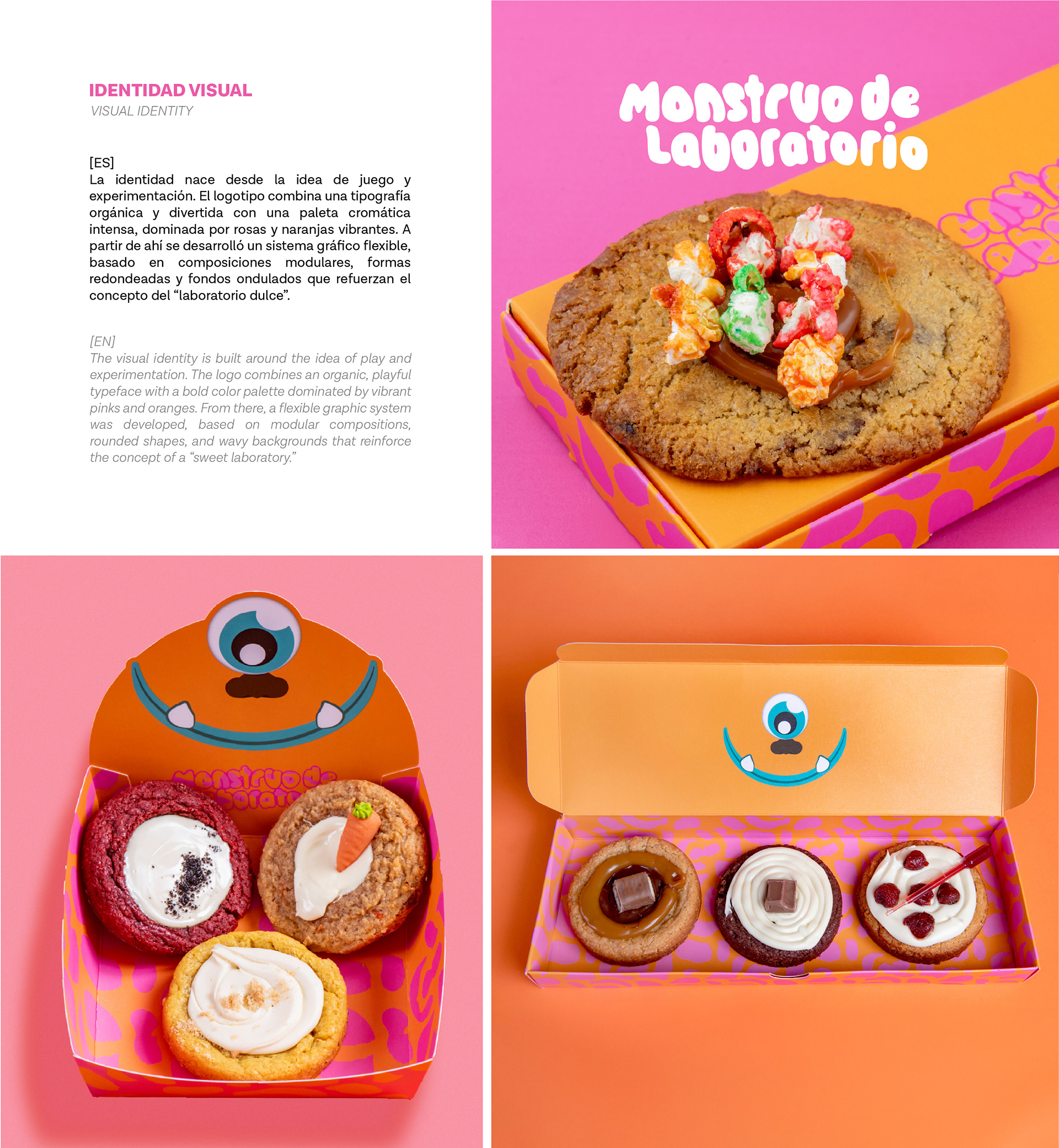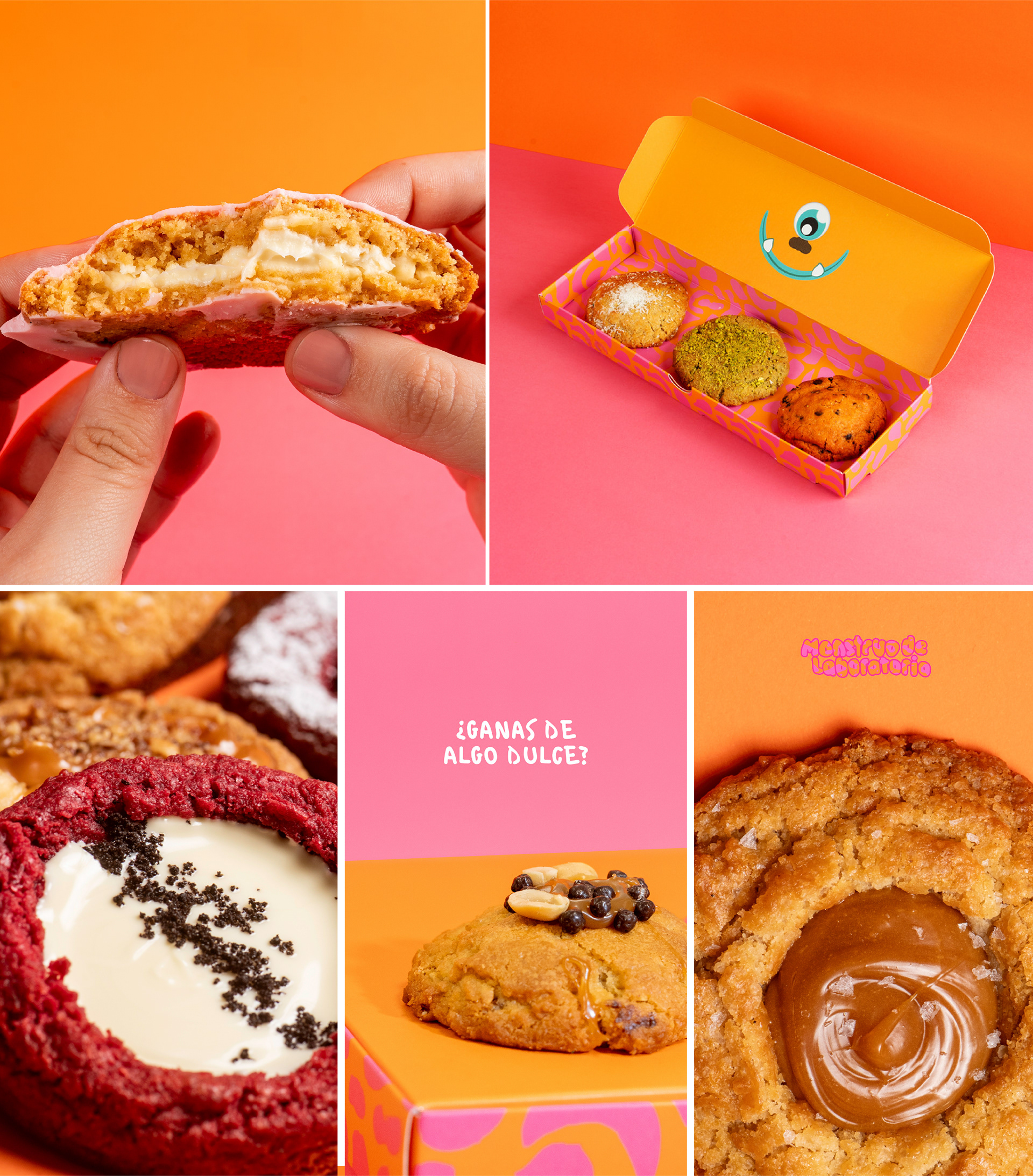 Visual identity and branding project developed at By Influence Agency for Monstruo de Laboratorio, a crumbler cookie brand from Seville. A vibrant and experimental graphic universe built around color, humor, and creativity.