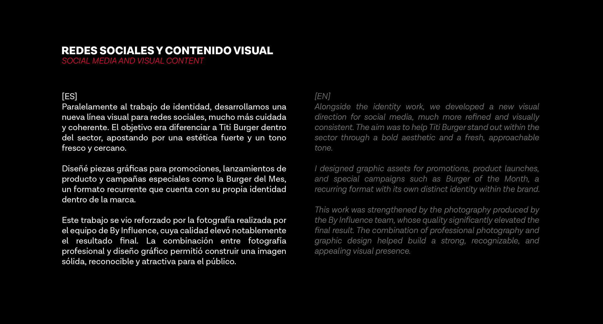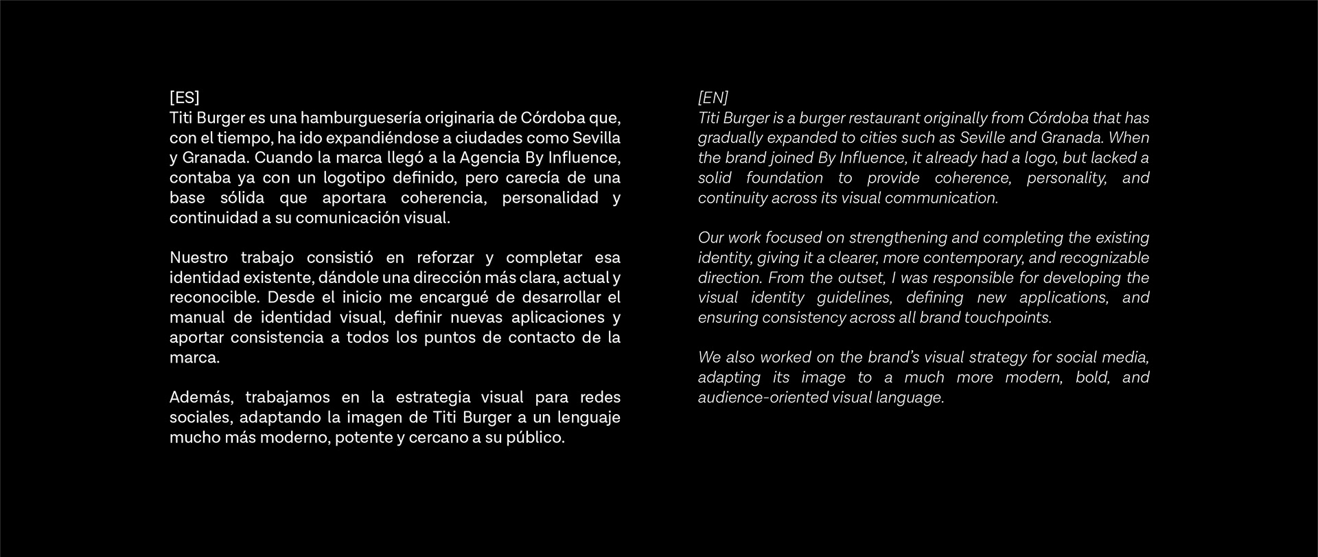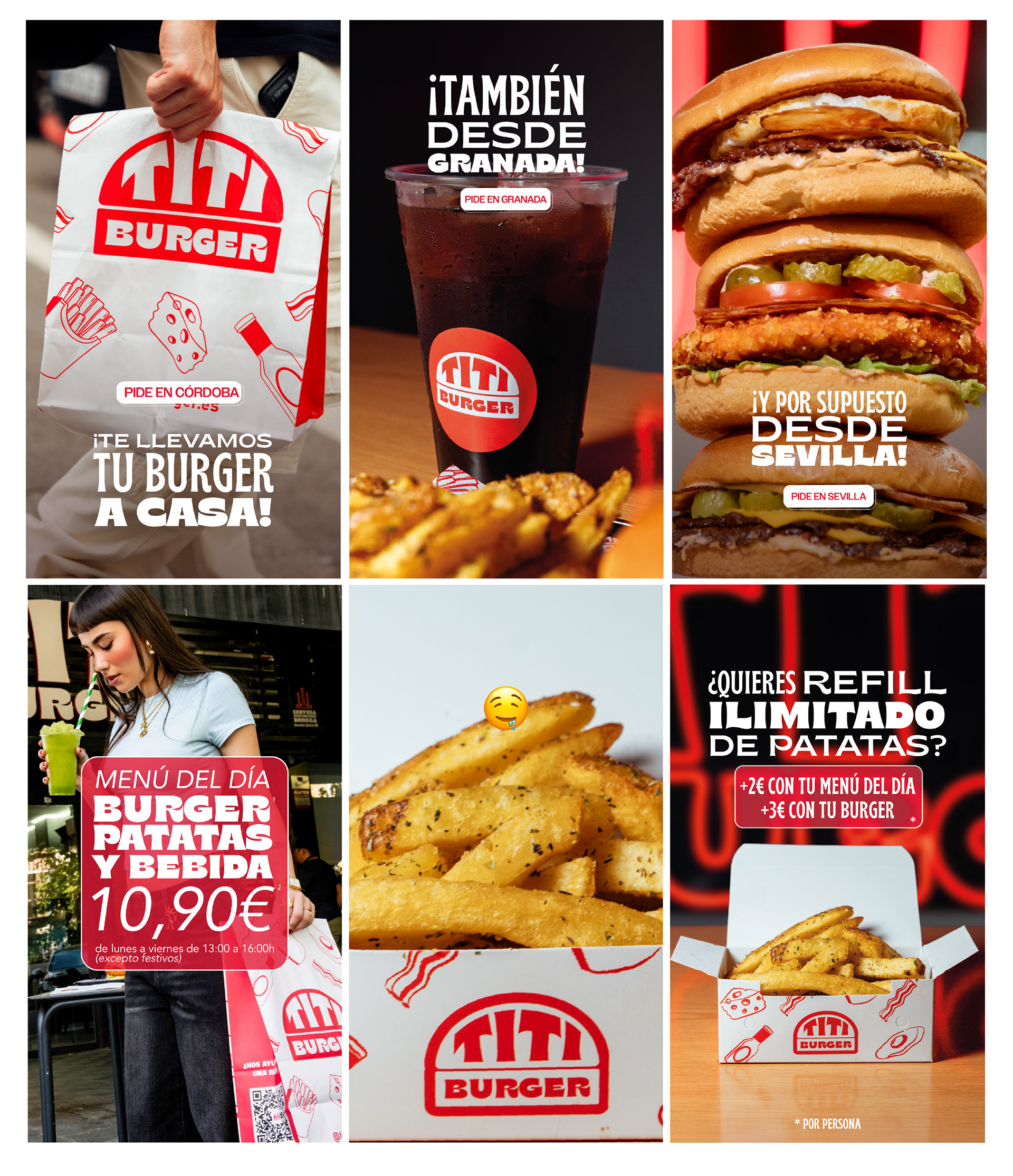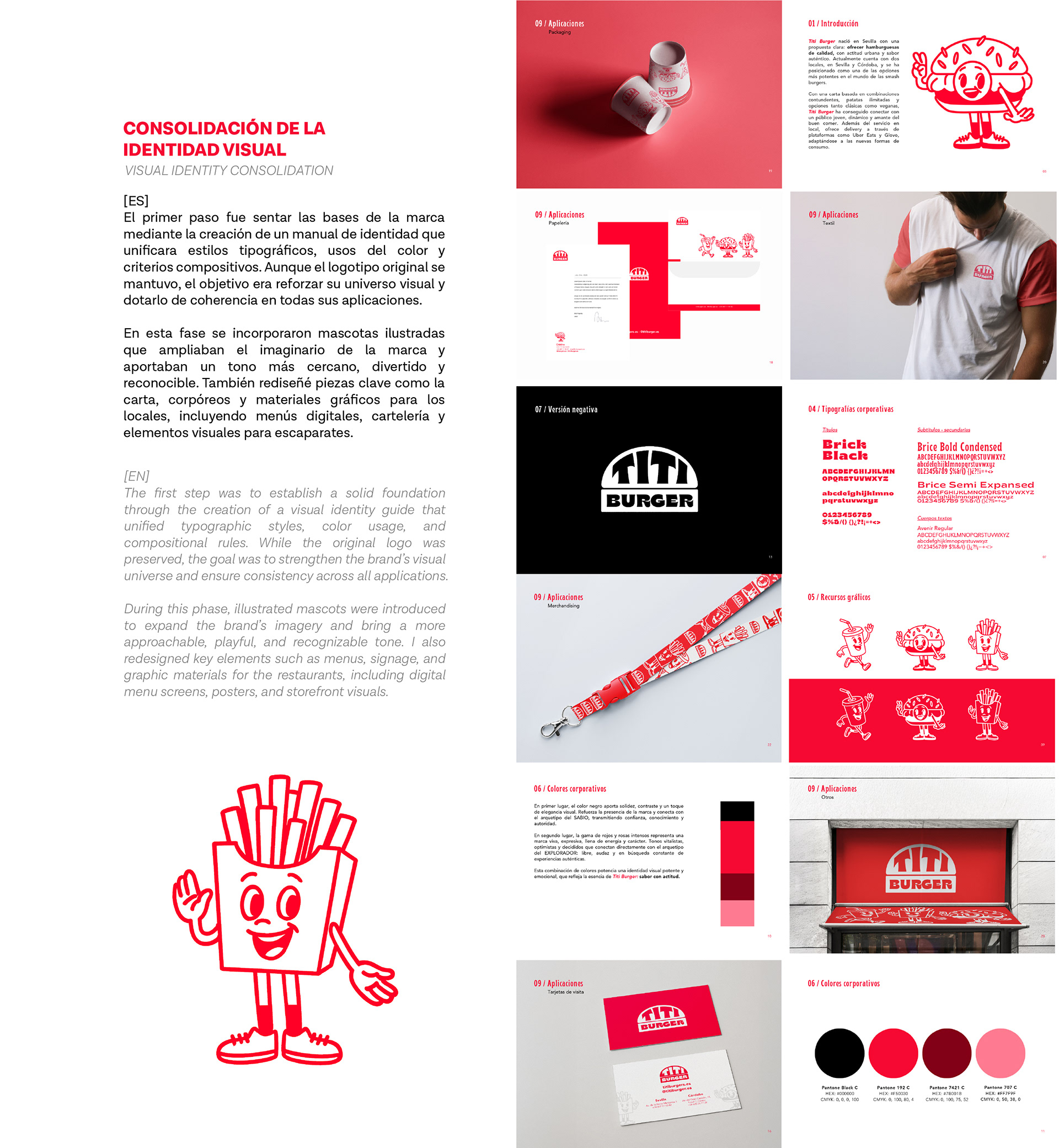 Visual identity and graphic direction project for Titi Burger, developed at By Influence Agency. A brand consolidation project focused on strengthening personality and building a coherent visual communication across physical spaces and social media.