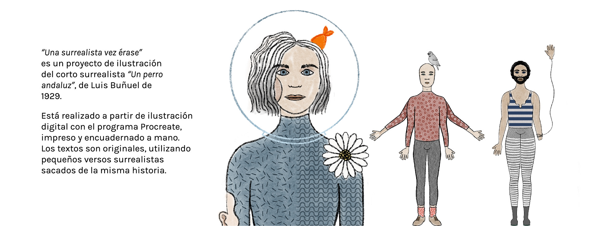 Ilustración de una historia basada en "El perro andaluz", cortometraje surrealista de Luis Buñuel.